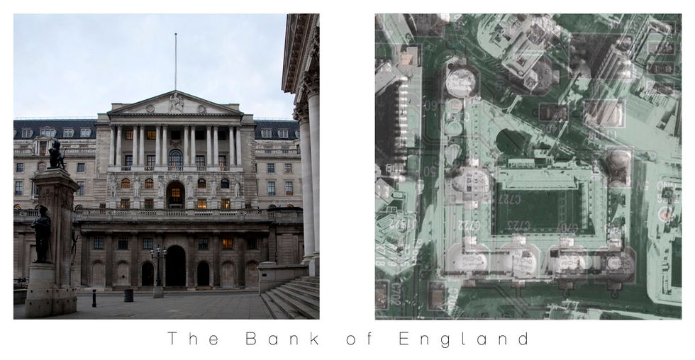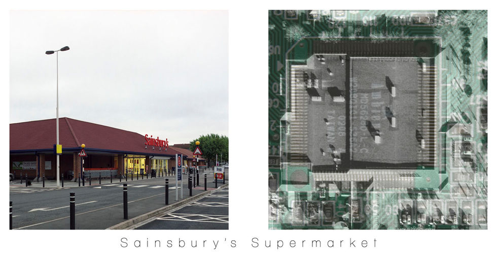 "Exteriorismo" es una serie de fotografías urbanas desde dos puntos de vista diferentes: el primero es el común, el que nuestros ojos conocen, no solo con los elementos vistos en la imagen, sino también con la perspectiva. Esta es una imagen “deadpan” donde la única intención es mostrar un lugar, una forma arquitectónica definida por su funcionalidad. La segunda imagen es una doble exposición de una imagen satelital del mismo edificio, superpuesta a una imagen de un chip o un circuito integrado, el cual se parece una maqueta de una ciudad. De hecho, tanto en los circuitos integrados como en las ciudades, todas sus partes tienen una función específica que hace que el sistema funcione.